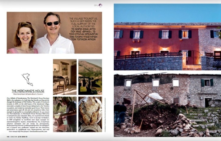 Since 2010 when the ‘revival’ began, Old Perithia has featured in numerous, press, tv, magazine and guidebook articles, incl.; TripAdvisor Certificate of Excellence from 2015-2021 & Travellers’ Choice 2021. ‘Best Places to Visit on Corfu’ Telegraph Travel. 2023 & 2024 National Geographic Travel Featured Village. Virtuoso Life. BA Highlife. The Independent Indy Travel. DK Eyewitness Guide. The Rough Guide. Fodor’s . Lonely Planet. London Evening Standard, MTV Travel. House & Garden. GREC14N. The Guardian. Woman&Home. Hotel Guru. Sunday Times Travel. Expedia. TrufflePig. Libro d’Oro. Mr Hudson Explores. Jamie Magazine. Brigitte Magazine. Culture Trip. The Financial Times. Norwegian Airlines. Atlas Obscura. Trivago Business. Thomas Cook ‘Recommends’. EasyJet Magazine. Reise Knowhow Guide. As featured on ITV 2012 Corfu ‘A Tale of Two Islands’ & 2020 ‘Greek Island’s with Julia Bradbury’ and recently ‘Adriatic Gardens with Monty Don BBC2 ep. 3